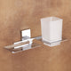 Qeyra Opera Stainless Steel 304 Grade 2in1 Glass Soap Dish with Glass Tooth brush Holder/Soap Stand/Tumbler Holder/Bathroom Accessories - Chrome Plating